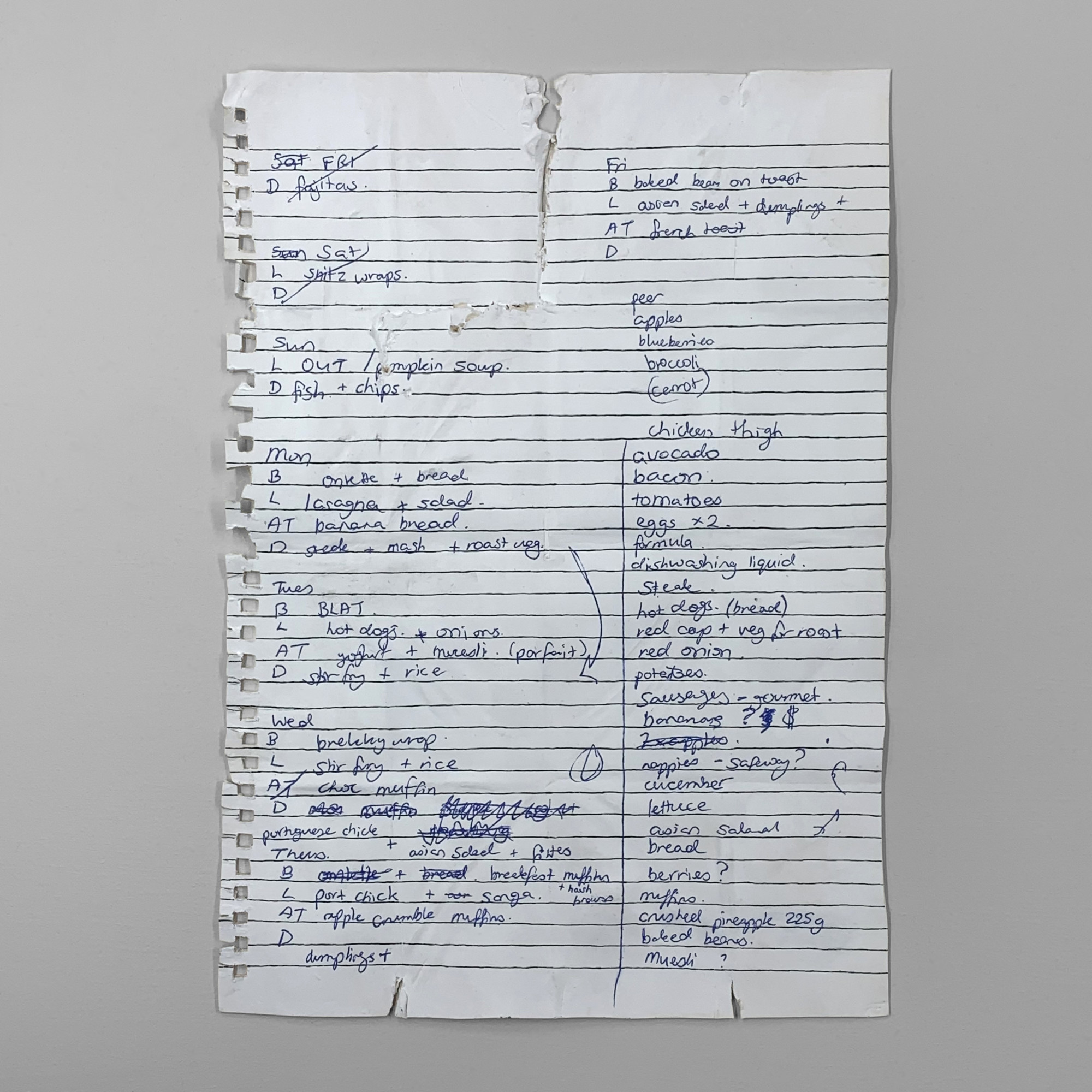 Here’s a ceramic sculpture written by someone who used their time to plan out a week’s worth of breakfasts, lunches, afternoon teas and dinners.