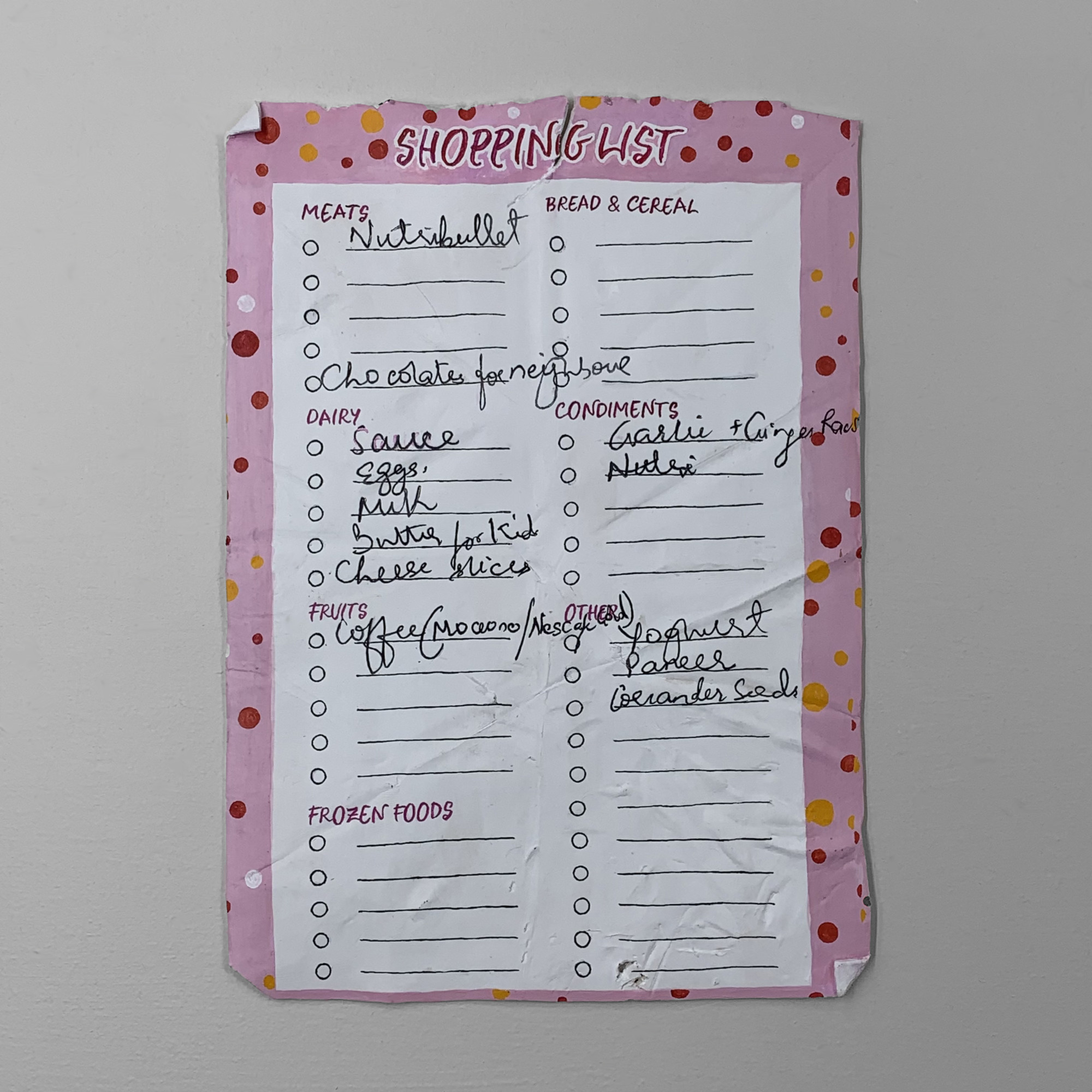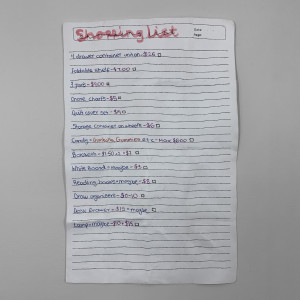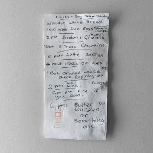 +I was 15 when I first got a part time job as a supermarket trolley pusher and I’ve now worked there on and off for more than half my life. Part of the job is getting rid of any rubbish left behind in the trolleys, which is usually just receipts, catalogues or more interestingly, abandoned shopping lists. Supermarkets are a funny intersection between the public and the private, and shopping lists can often provide a unique portrait of the people we pass in the aisles.