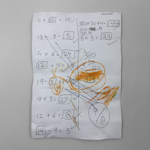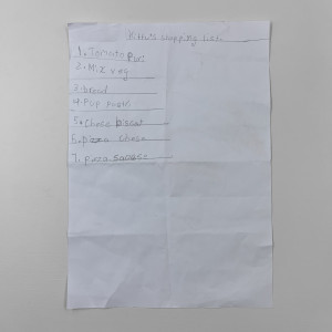 With schools closed last year, there was an increase in shopping lists written by children. Here’s a ceramic sculpture of a shopping list I found written on the back of some maths homeschooling.