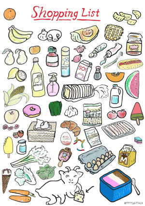 On a blank piece of paper draw all the things you'd like to buy next time you go get your groceries.