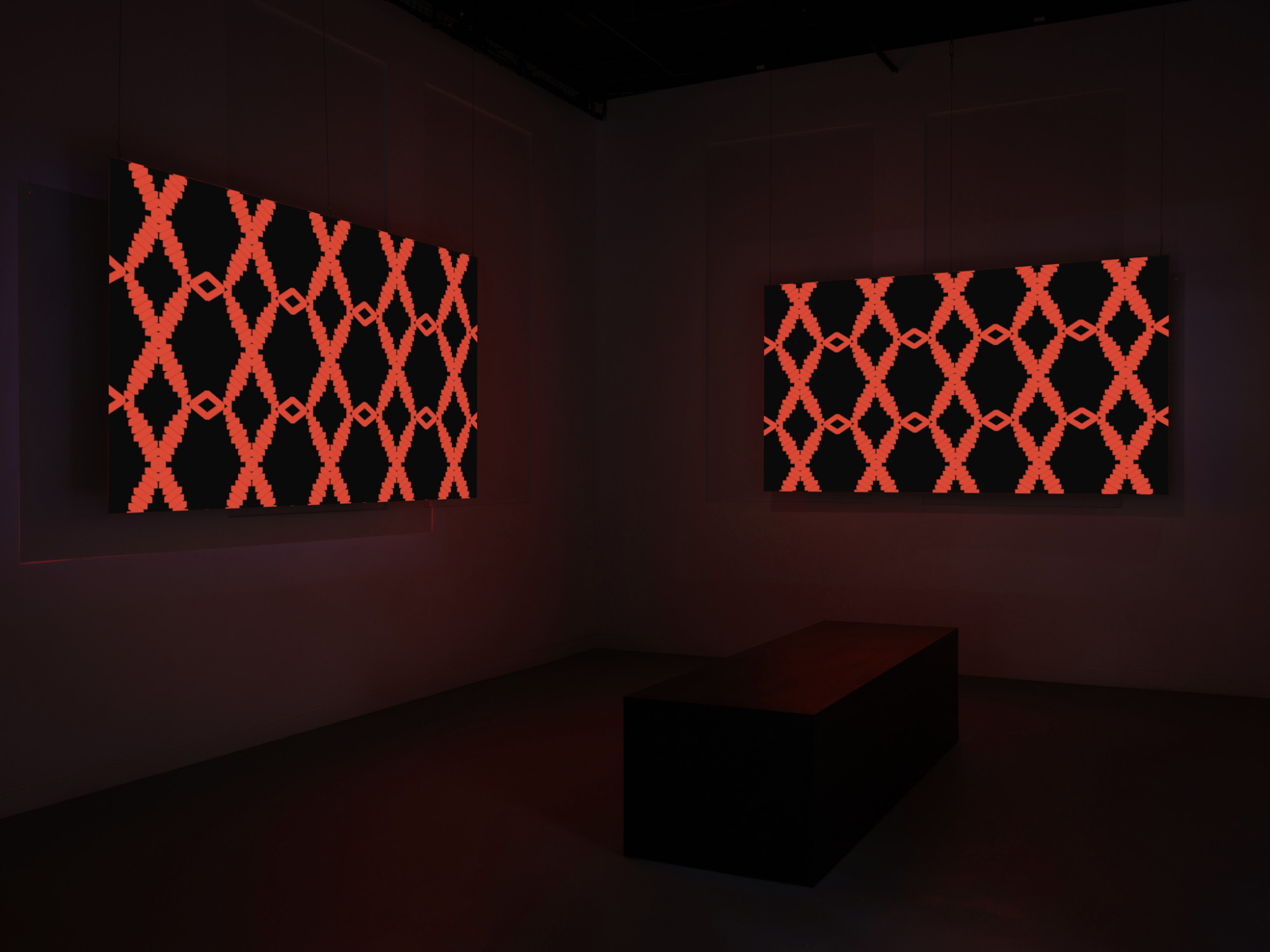 Tongan artist Sione Faletau’s multidisciplinary practice spans video, soundscapes sculpture and installation to explore cultural systems and identity. Anchored in Tongan and Moana epistemologies, his work embodies notions of time, space and affect. Central to his practice is ongo—meaning both sound and feeling—a concept that encompasses the deep interconnectedness of Tongan customary practices. In his digital installations, Faletau explores fonua (land, people, womb) and the complexities of human relations and connections with the world our internal and external architectures, environments, and the unseen forces that bind us. Extracting audio data from songs and field recordings he translates their sonic frequencies into immaterial and intricate kupesi–the symbolic patterns used on ngatu (bark cloth)–which hold deep cultural and ceremonial significance.