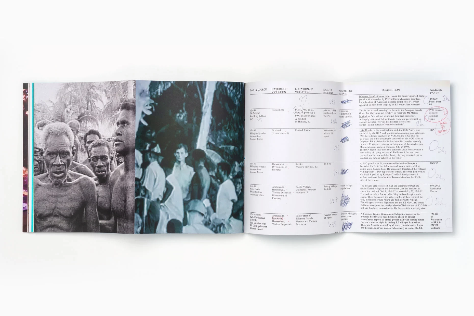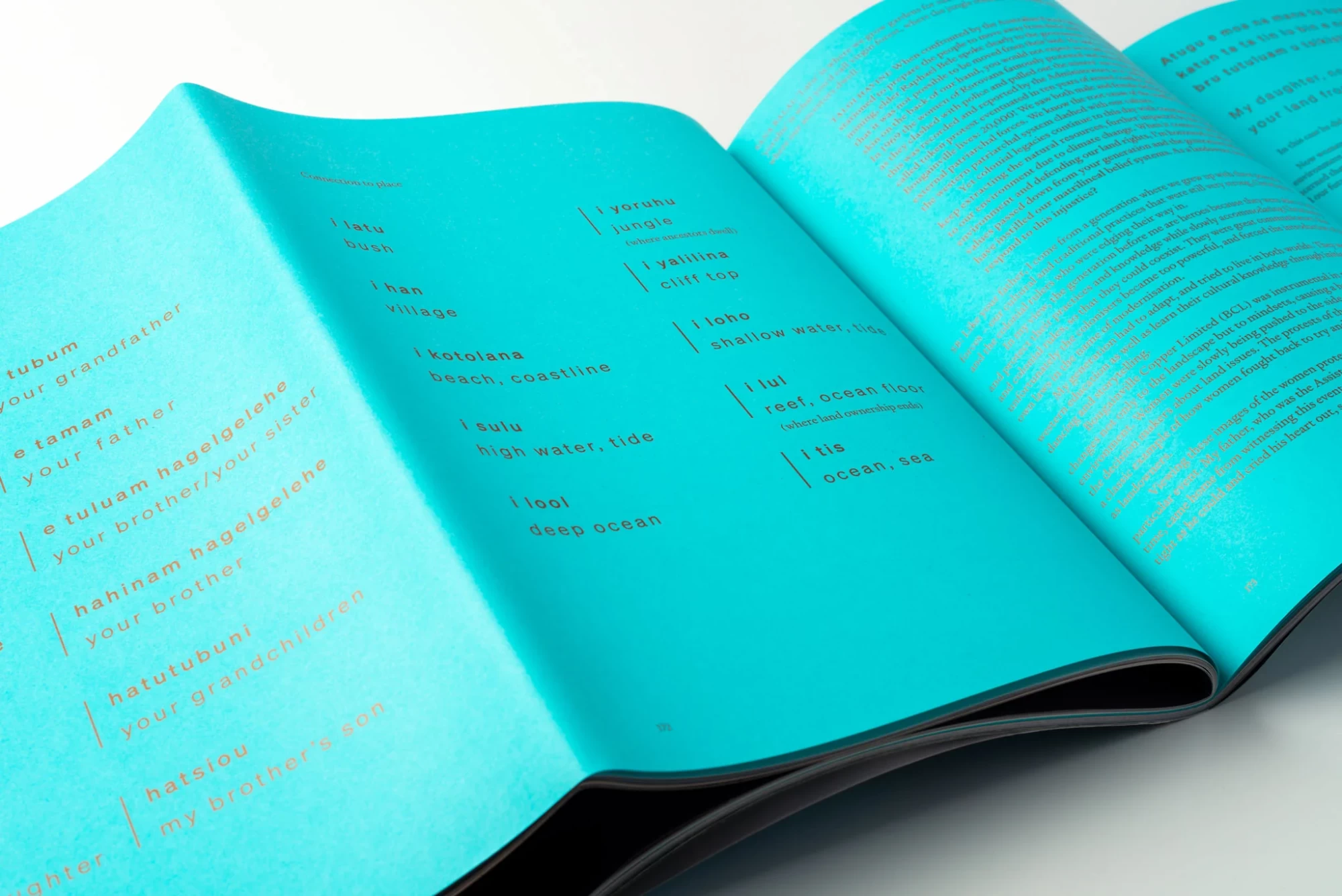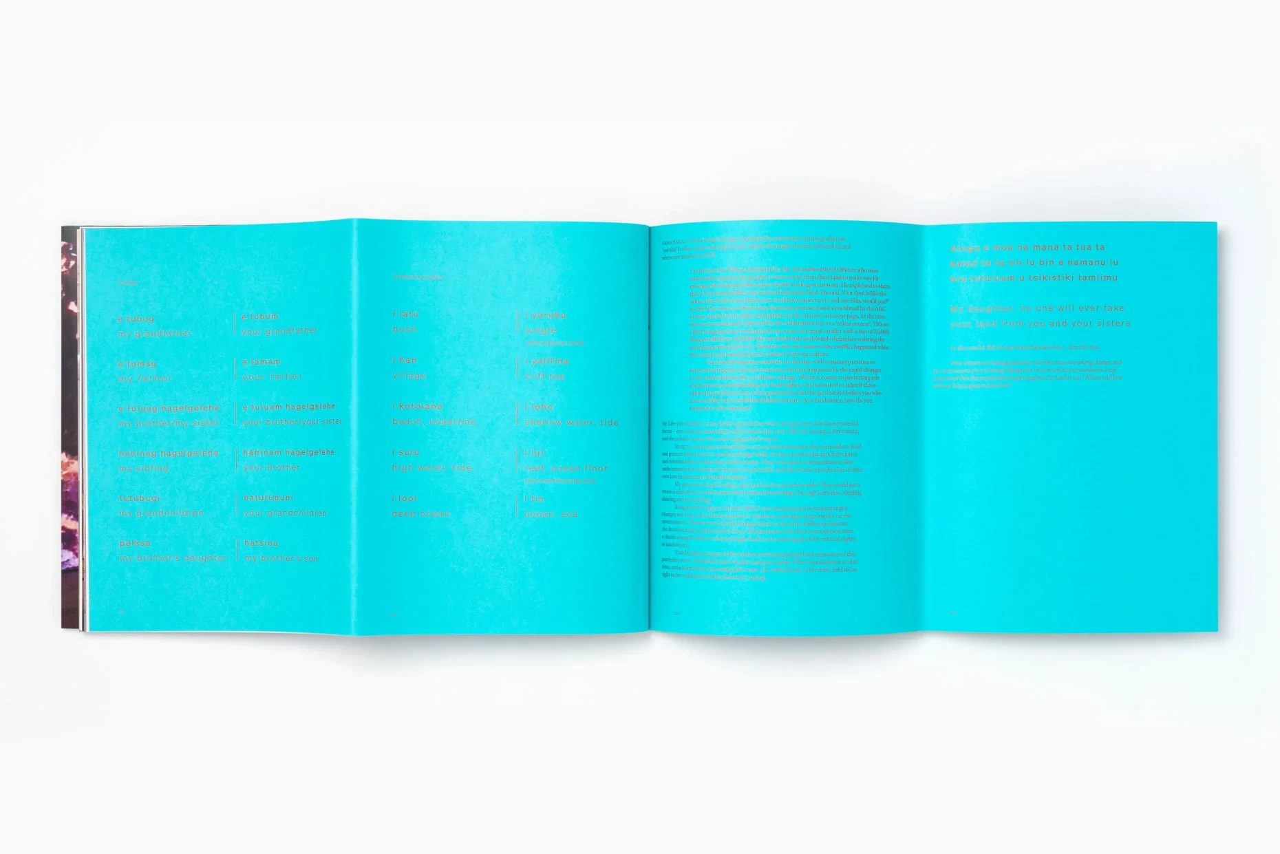 Artist Taloi Havini’s first publication Reclamation is an account of her ongoing investigation into history, the environment and nation-building within the social structures of her birthplace, the Autonomous Region of Bougainville. The publication expands on the themes examined in Reclamation, a solo exhibition commissioned by Artspace, Sydney. It draws attention to Australia’s colonial relationship to Bougainville, describing the conflicts and injustices and the struggle for self-determination. Simultaneously it reclaims aspects of Bougainville’s culture, identity, and inter-generational connections to land and people. Working across mediums, Havini examines the environmental destruction caused by extensive copper mining in the region.