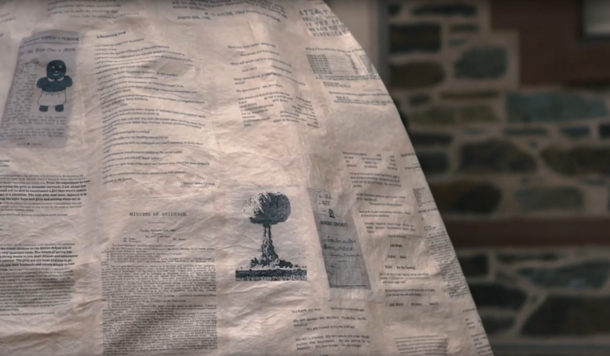 This is an old love story about radio-active dust and ideas that refuses to settle, the refusal to accept desecration through uranium mining, the transport of waste and uranium oxide concentrate through lands/rivers/seas, and the ongoing struggle against a waste dump on Aboriginal lands. We honour all First Nations and Pacific communities who fight to protect country and black lives.