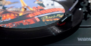 Produced over six years, this suite of five video works is complemented by a series of classic low-fi vinyl records emitting the cacophony of the five metropolises. These are situated amidst a huge two-wall graffito of the so-called ‘Top City Tourist Hits’ executed by Sydney street artist Mistery. The oversized record labels feature collaged touristic clichés, and as they spin viewers are invited to download the city noises from a USB port.