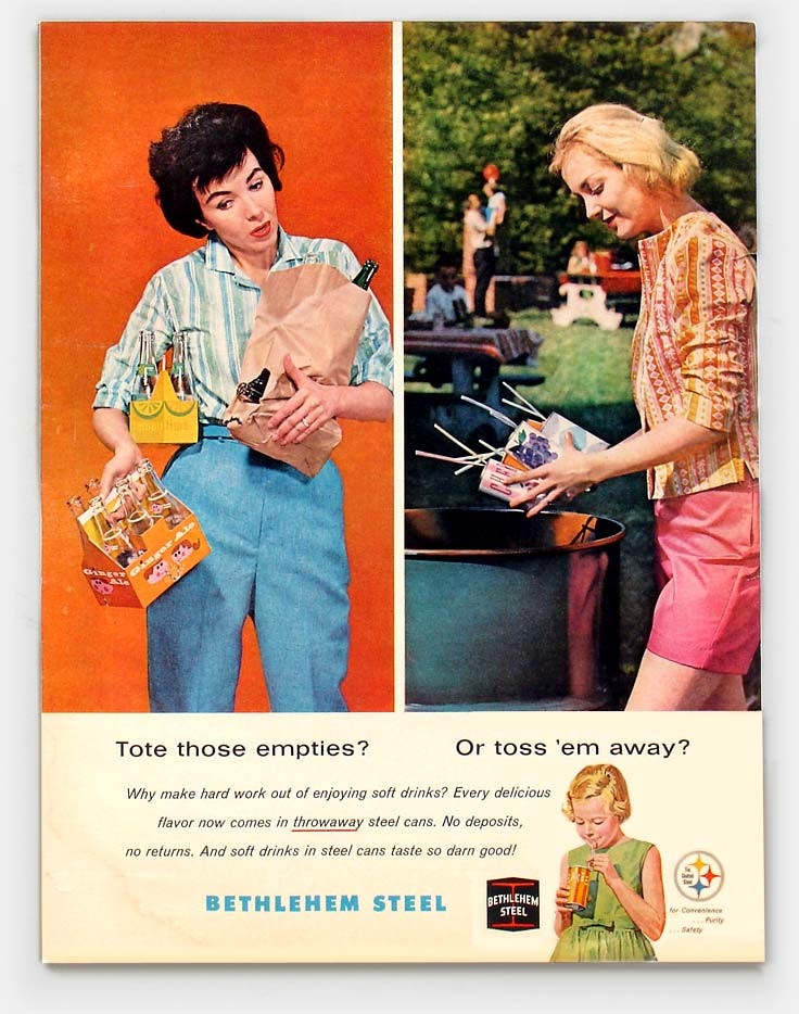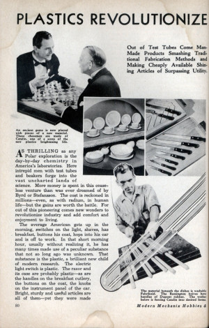 Within a matter of decades, plastics have become cheap and ubiquitous in our daily lives, transforming society into one that’s focused on ‘throwaway living’ and increasing convenience. In the 1945 book ‘Plastics’, Yarsley and Cousins describe a carefree, plastic-filled life: “This [imaginary] plastic man will come into a world of colour and bright shining surfaces where childish hands find nothing to break, no sharp edges, or crevices to harbour germs... The walls of his nursery, all his toys, the teething ring he bites, the unbreakable bottle he feeds from [are all plastic]. As he grows he cleans his teeth with plastic brushes, clothes himself in plastic clothes, and writes his first lesson with a plastic pen. The windows of his school, curtained with plastic cloth, [are] entirely grease- and dirt-proof ... and the frames, like those of his house, are of moulded plastic, light and easy to open, never requiring any paint.” Our addiction to plastic has begun.