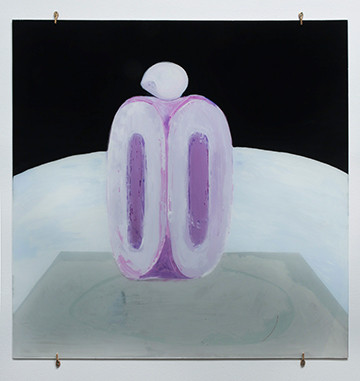 Clare Milledge prompts us to reconsider our relationship to objects, materials, nature and language. Hinterglasmalerei, her idiosyncratic technique, is a process of painting backwards, an approach involving the application of paint on glass. In her hands, it involves the brushing on, then scraping away of paint, repeatedly, until resolution is achieved. A negotiation, even for the most apparently simple paintings.