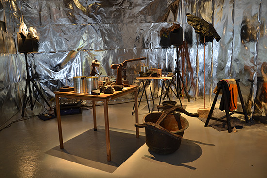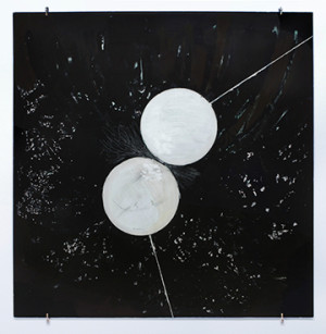 Milledge invokes elemental potency with pigments and geometry. She uses text to point ambivalently at ideas as well as images to represent them. Familiar themes are the realm of shamanistic ritual, environment and an invented pre-history. Textiles – often intensely-dyed hessian – appear in her paintings for their texture and connotative power, their standing in for nature. Glass has the potential to co-house a sharpening clarity with a darker, murkier content. Decidedly, nothing is clearly given.