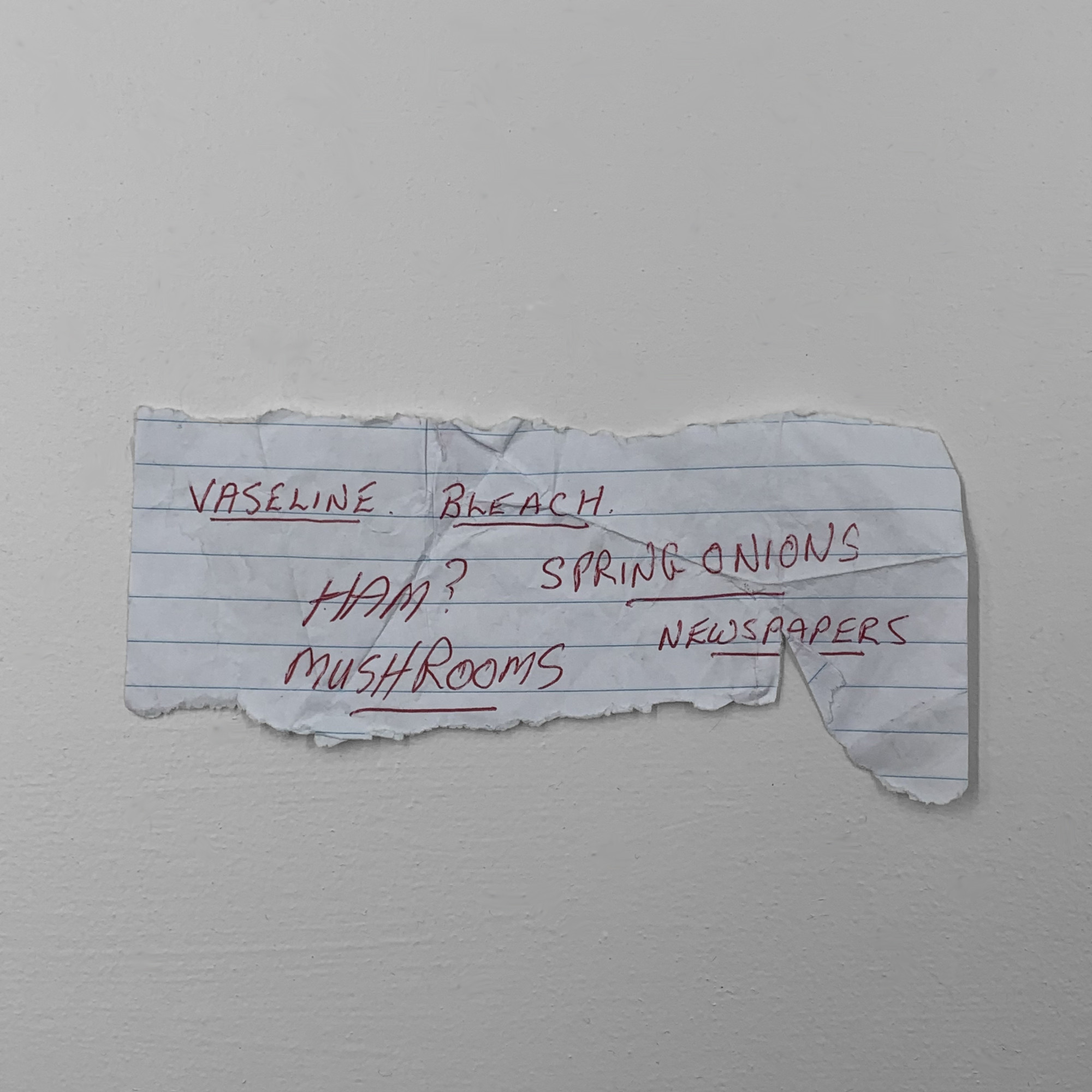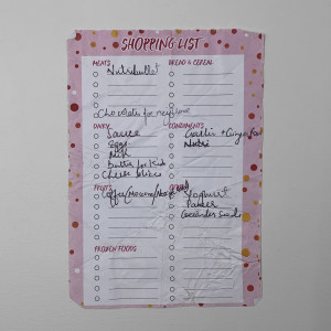 One of the only places you’re allowed to go during lockdown is the supermarket, and so it becomes quite the hangout destination. I noticed that many of the shopping lists I found at this time became increasingly shorter as people, looking for an excuse to leave the house, would spread out their weekly shop over several days.
