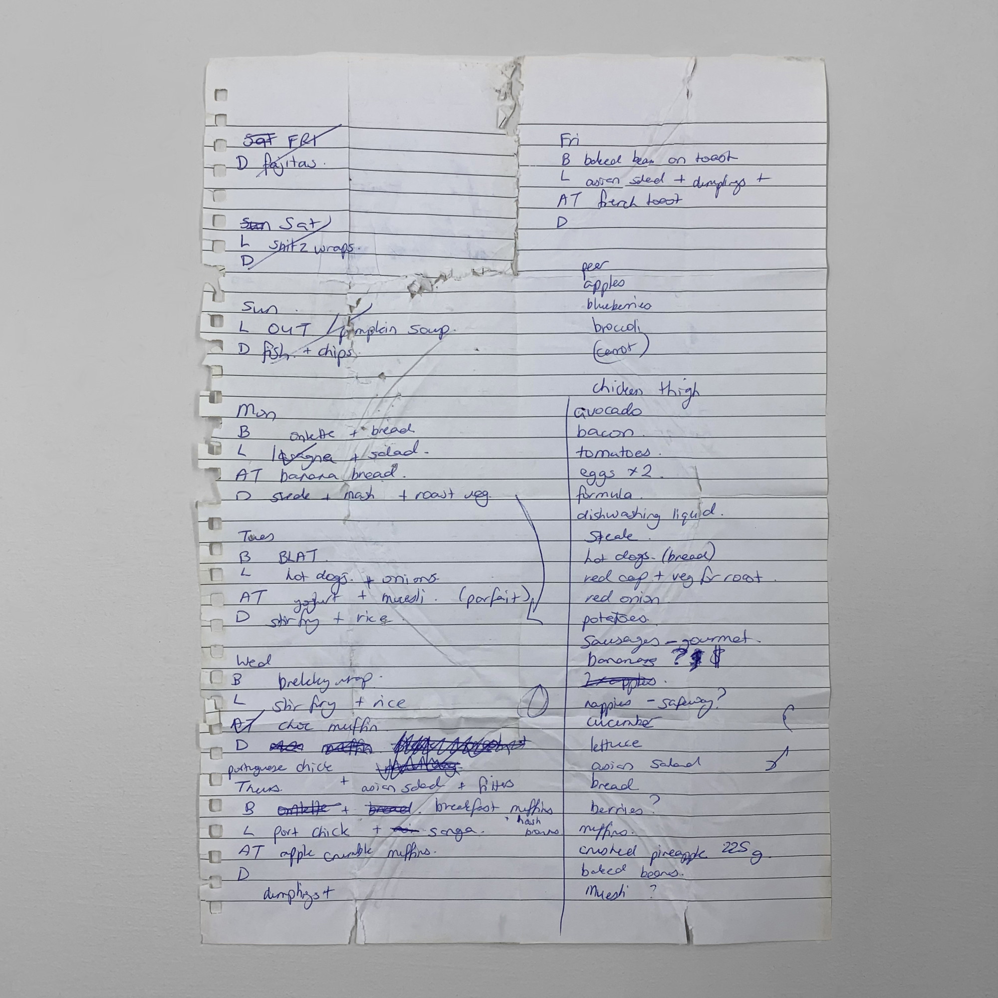 Here’s a ceramic sculpture written by someone who used their time to plan out a week’s worth of breakfasts, lunches, afternoon teas and dinners.