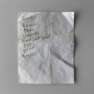 As our world changed during the pandemic, I noticed that our shopping lists started reflecting these changes too. For this project, I’ve recreated a new series of ten ceramic sculptures based on shopping lists I found while working during Melbourne’s 2020 lockdown. The sculptures will be presented here alongside photos of the actual shopping lists.