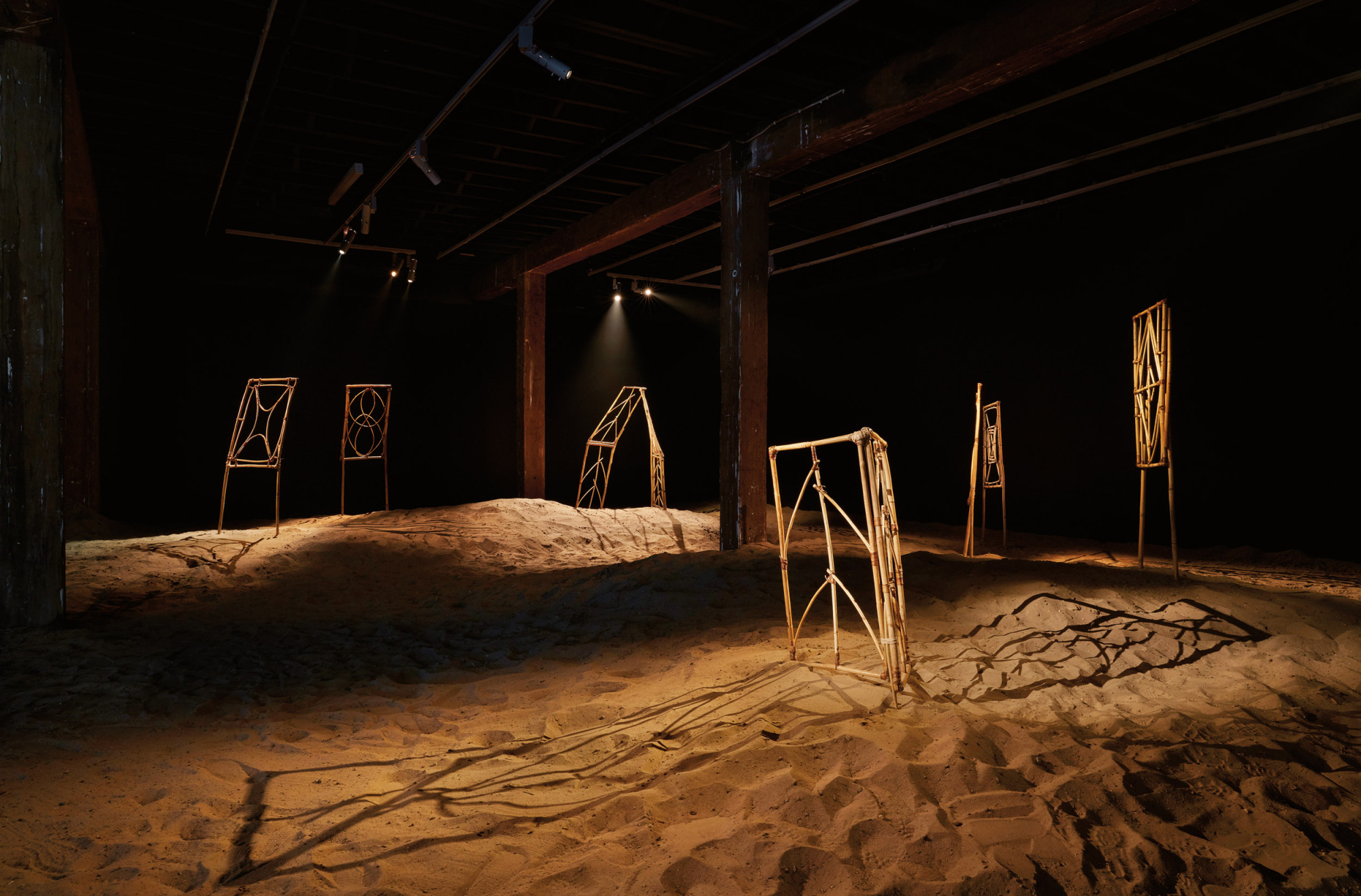Havini’s new site-specific installation, Reclamation, was created collaboratively with her Hakö clan members. The sculptural works lean and suspend into themselves as a form of collective map-making. Underlying the ephemeral installation of cane and earth, are questions about the ways in which we relate within temporal spaces; how borders are defined and claimed as well as the value of impermanence and embodied knowledge over fixed historical understandings.