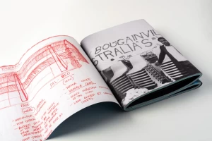 Co-published by Artspace and Formist Editions, and presented in a metallic copper slip case, the publication is an immersive experience constructed to utilise unique four-page spreads that allow it to be read in multiple ways.