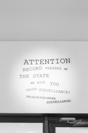 In Ali Gumillya Baker’s Racist texts, books are piled perilously high - four and a half metres - looming above our heads so that we must crane our necks to read their spines. We are unable to open these books and thumb through their pages but their titles face outwards, not to be ignored. Compiled over a period of five years, Baker’s installation of texts stand as an ‘anti-memorial’, a marker of what has entered the narrative and what remains absent.