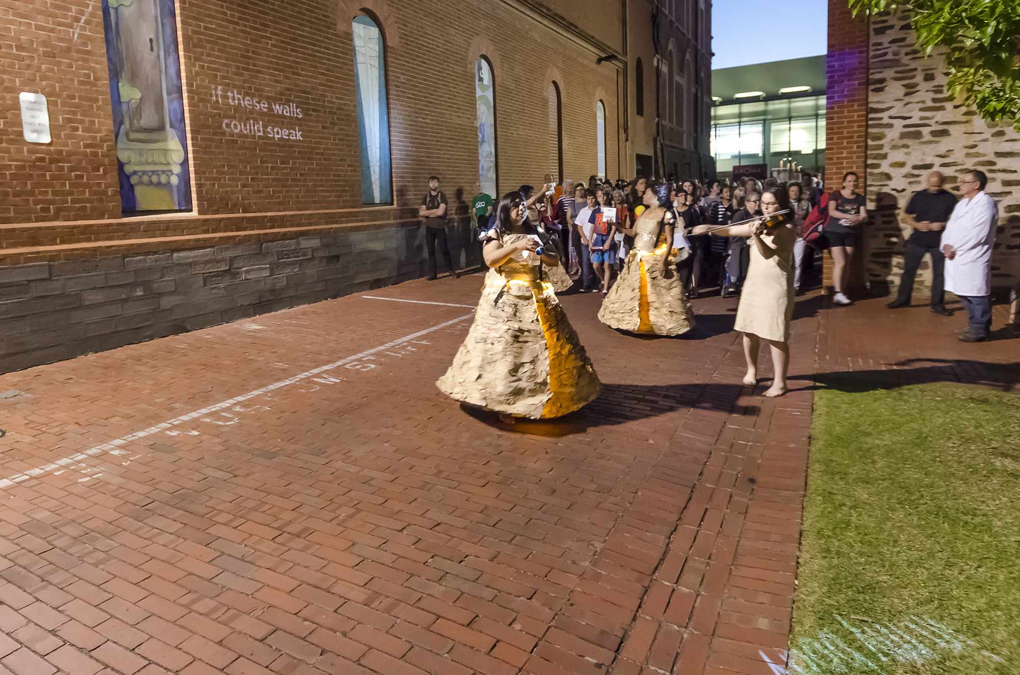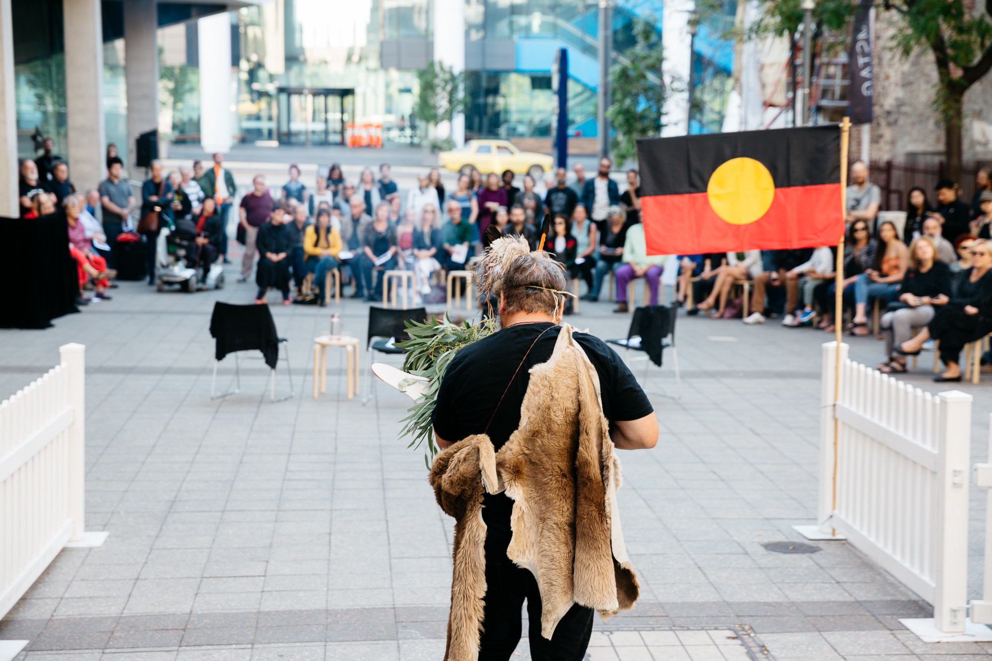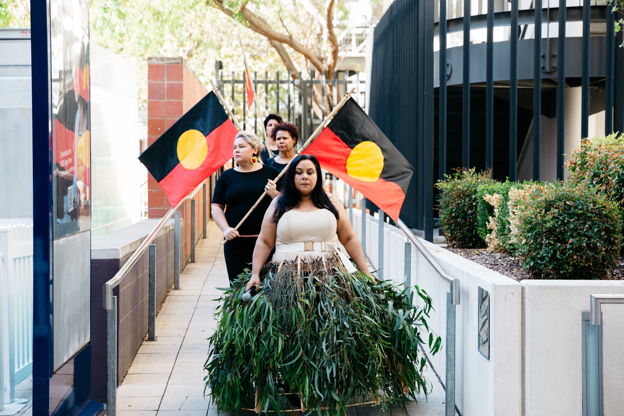 Act II was presented in three stages. Two site-specific performances were conducted in and around the city's colonial 'cultural-precinct'. Accompanying images and text were also installed to weave a QR-code narrative of sovereign love poems on ten bus shelters in the city and suburbs of Adelaide.