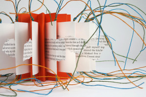 Chris Mansell's work embodies the intersectionality of object and word; materiality deepens and interrogates the text. In preferencing some aspects of language, reading and comprehension is changed. The Quiet Book, for example, dispenses with lexical content and leaves only structure. RUBRICS, however, occludes, then slowly reveals, possible poems within poems. Stung More and Words, mainly hinges further explores this.